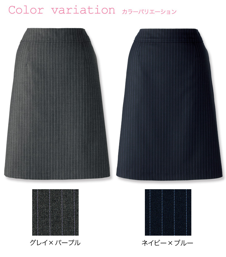 【在庫限り】[通年]<Vega>5つの優れた機能付き!寒色系ピンストライプ・Aラインスカート(34-AS2270)