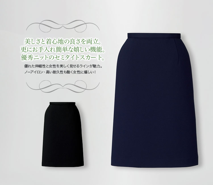 【在庫限り】[通年]動きやすさと美しさを両立!スッキリ美ラインのセミタイトスカート<54㎝>(34-AS2273)