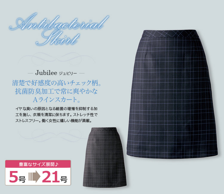 【在庫限り】[通年]<Jubilee>抗菌防臭加工で常に清潔なチェック柄のAラインスカート(34-AS2277)