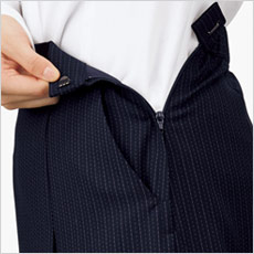 - ジャストウエスト、両脇斜めポケット、左脇ファスナー開き、ウエスト後ゴム