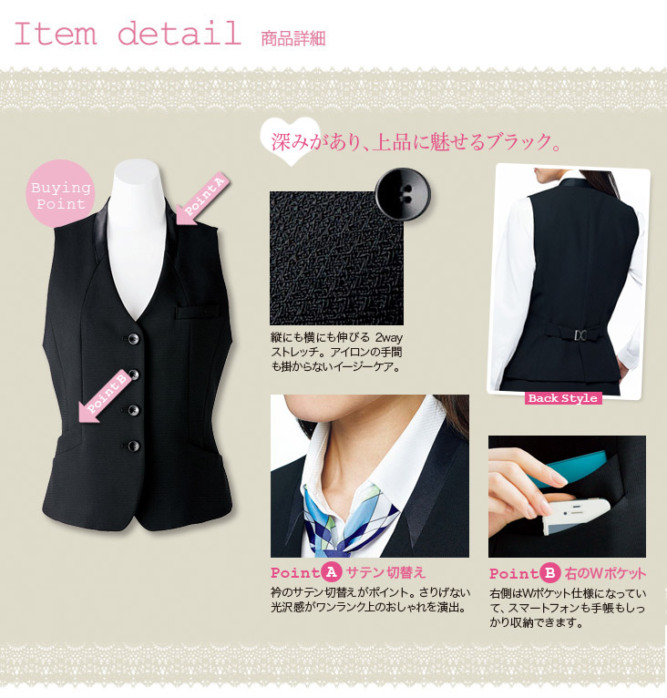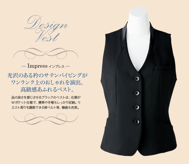 【在庫限り】[通年]<Impress>衿元サテンがお洒落なパイピングのベスト(34-AV1248)