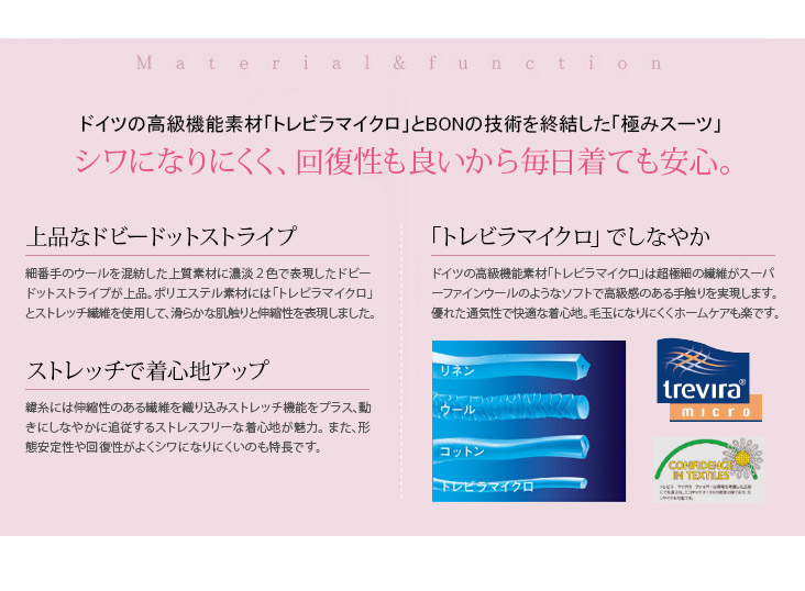 - ドビードットストライプ(ポリエステル60%、毛40%)