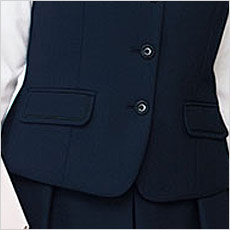 ベストにはウエストサイズの調整可能なベルトと、腰まわりのゆとりを補う後ろサイドベンツがあります。