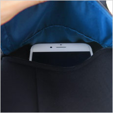 フラップポケットの上部に空間を作る事でスマホが飛び出さずすっきり収まります(上部の深さ約3cm)