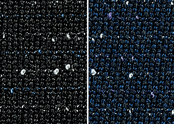 ブラック地にはグリーンとホワイト、ネイビー地にはパープルとホワイトのブークレー糸を交互に配し、ツイーディーな素材感を表現しました。適度なハリ感と膨らみが美しいシルエットを創り、ニットならではのしなやかな伸縮性が快適な着心地を叶えます。