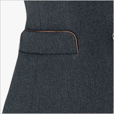 フラップ付きの腰ポケットに施されたパイピングがアクセントになっています。