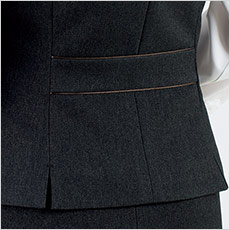裾に入ったスリットが腰まわりにゆとりを持たせ、ウエストのパイピングが腰位置を高く見せます。