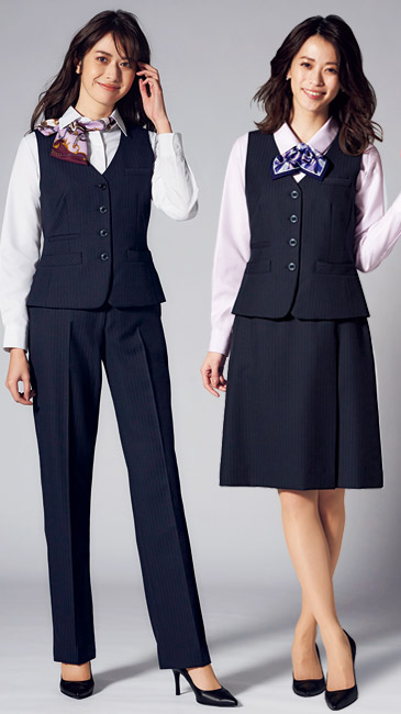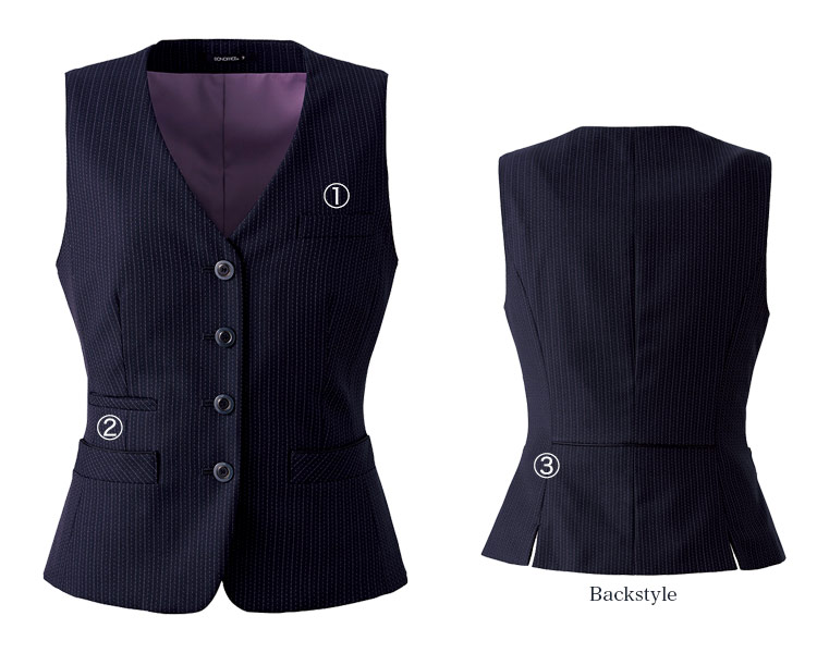 ドット状のストライプが、クール過ぎず華やかな印象のベスト。ウール混のしなやかな生地と細部のディテールに上質感が宿ります。裏地の抗菌防臭で、清潔が持続します!