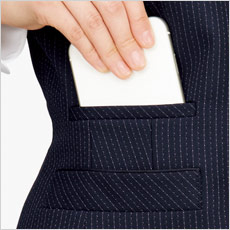 - 左胸箱ポケット、両脇ポケット、右脇スマホポケット、後脇スリット開き