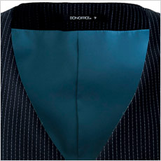 後ろ裾に入ったベンツが腰まわりにゆとりを持たせ、ウエストのパイピングが腰位置を高く見せます。