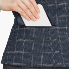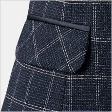 両脇フラップポケットは、黒のパイピングのアクセント。