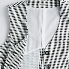 モダンで爽やかな印象のやや縦長のギンガムチェックは、裏面にトリアセテートを編み込んだ高機能ニット素材。ニットならではの抜群の伸縮性とイージーケア性、シワになりにくいのも嬉しいポイント。さらに樹が主原料のトリアセテートは吸湿速乾性・接触冷感性があり、なめらかな風合いが特長です。