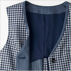 ベストの裏地は背抜き仕立て。通気性が良く快適に着られます。襟元の切り替えもアクセント。