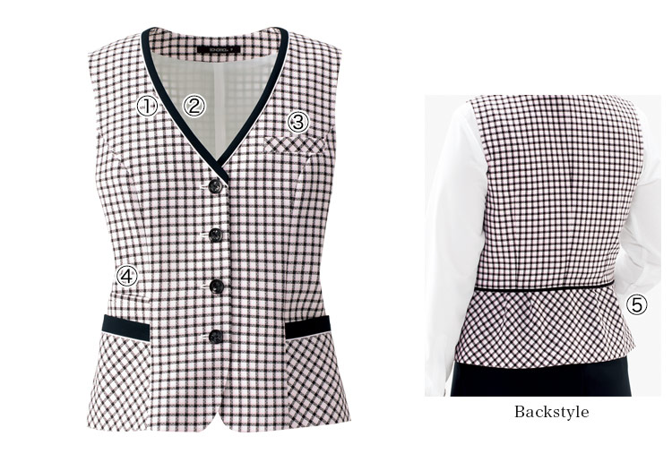さらさらとした風合いで夏でも快適な着心地のチェック柄ベスト。モノトーンベースに、グレイとピンクの2色展開。清楚な雰囲気でオフィスから医療事務まで幅広く対応!