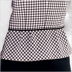 バックのウエストにはパイピングを入れ、腰の位置を高く見せます。ペプラム仕様で後ろ姿も可愛く。