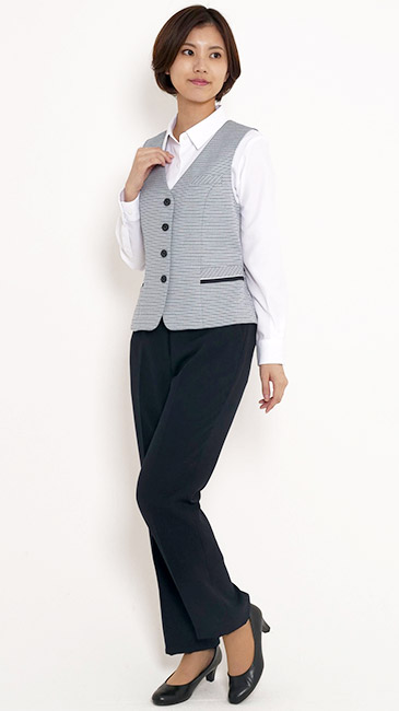 表情豊かに織り上げた清涼感のあるボーダー柄のベスト。背抜き仕立てで涼しく、しなやかでドライタッチな着心地の良さにもこだわり。
