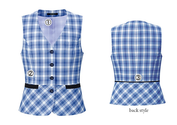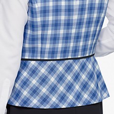 ジオメトリックなブロックチェック柄が印象的でありながら清楚な雰囲気のベスト。清涼感のある高機能素材「CoolBestⅡ®」を使用した素材は高い通気性でムレずに涼しく快適!