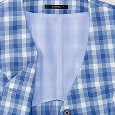 同色系のグラデーションで印象的に織り上げたドビーチェックは、清涼感のある高機能素材「CoolBestⅡ®」を使用。