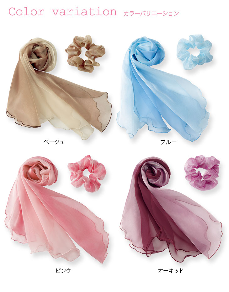 【在庫限り】やわらかシフォン素材のスカーフ&シュシュ<セット販売>(34-BA9133)