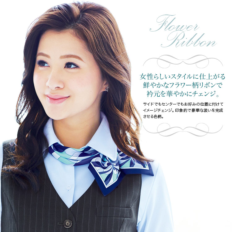 首元が華やぐ鮮やかなフラワー柄のスカーフリボン(34-BA9134)