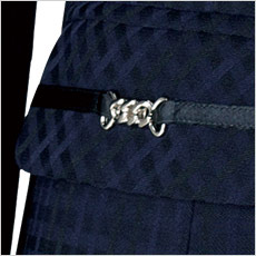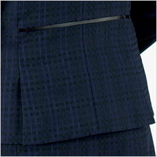 サイドの裾に入ったベンツが腰まわりにゆとりをもたせ、ウエストのパイピングが腰位置を高くみせます。