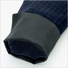 スリット開きの袖口は、上品なサテン地の裏地で折り返しても美しさをキープ。