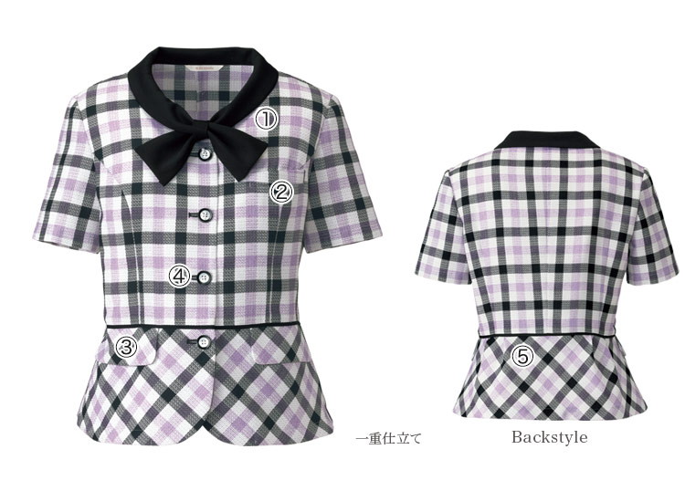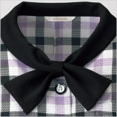 首元を引き締め、おもてなし感もあるリボンカラー。