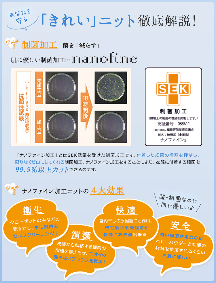 吸水速乾性に優れた快適素材。 汗の臭いを軽減してくれるナノファイン加工がいつでも清潔を保ちます。 一枚でも安心の透け防止効果もあります。