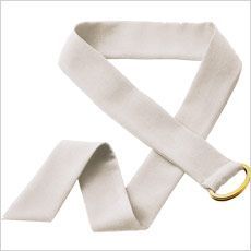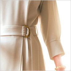Dカンでアクセントをつけた共布ベルト。グレージュのDカンはゴールド。