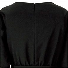 - 後ファスナー開き、左胸箱ポケット、両脇シームポケット、ウエスト後ゴム、袖裏なし、ベルト取り外し可能