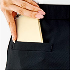 脱ぎ着がスムーズな左脇ファスナーと便利な両脇斜めポケット付き。