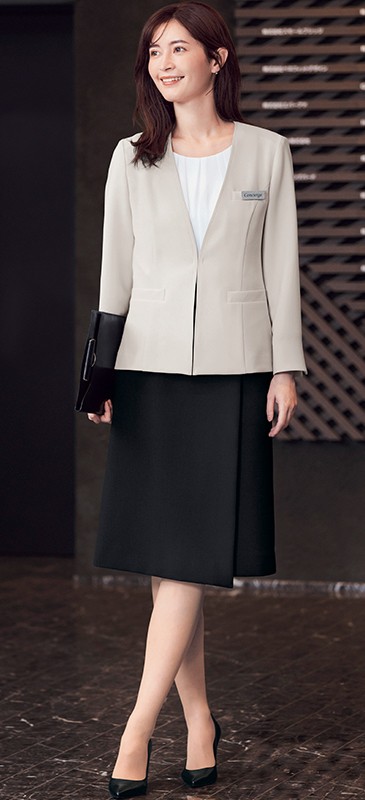 上品なシャドウチェック生地に、スタイリッシュかつ安心感のある長め丈のラップスカート。2WAYストレッチで動きやすく、抗菌防臭加工で汗ばむ季節も安心。再生PET「RENU®」を使用したエコ素材で環境にも配慮。