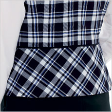 バックのウエスト部分にはパイピングを入れ、腰の位置を高く見せます。ペプラムの可愛いデザインもアクセントです。