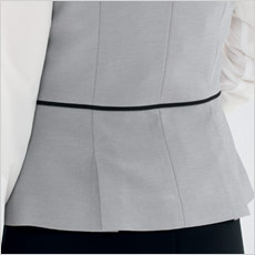 後ろウエスト部分のトリミングが腰の位置を高く見せ、裾に入ったサイドベンツが腰回りにゆとりを持たせます。