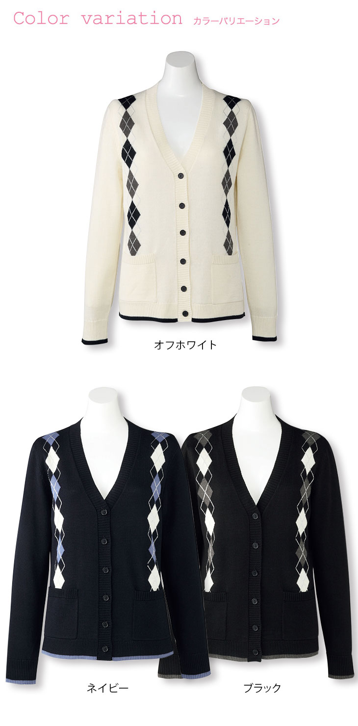 【在庫限り】[秋冬用]【厚さ:中】大人可愛いアーガイルがお洒落なカーディガン(34-KK7120)