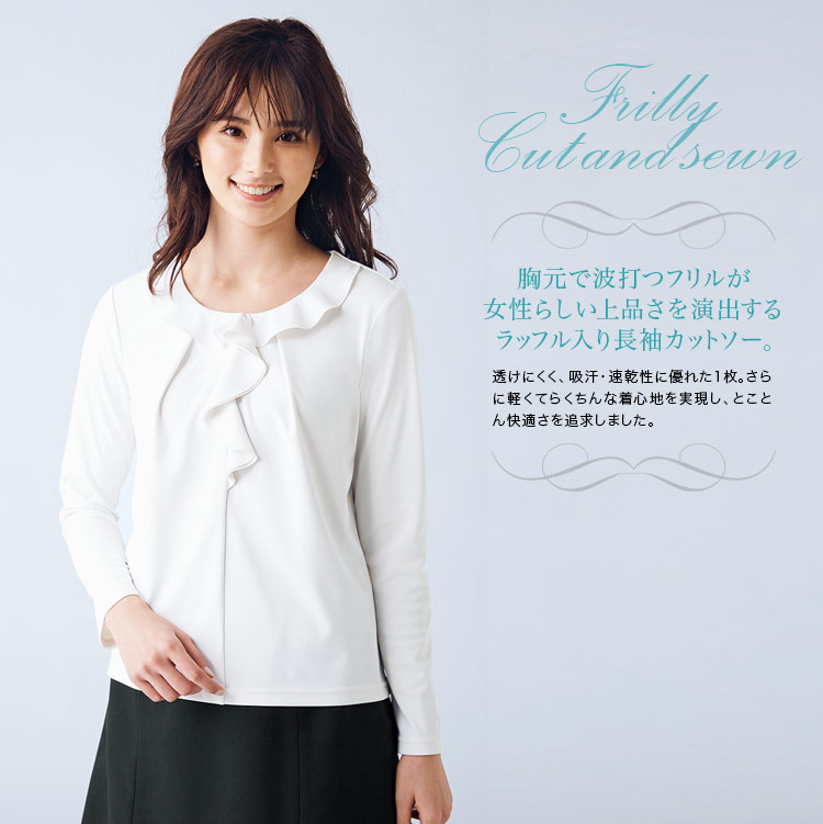 【在庫限り】[通年]胸元で波打つフリルがエレガントな長袖ニット・カットソー(34-KK7503)