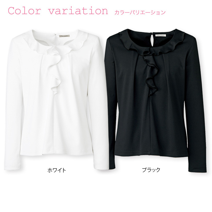 【在庫限り】[通年]胸元で波打つフリルがエレガントな長袖ニット・カットソー(34-KK7503)