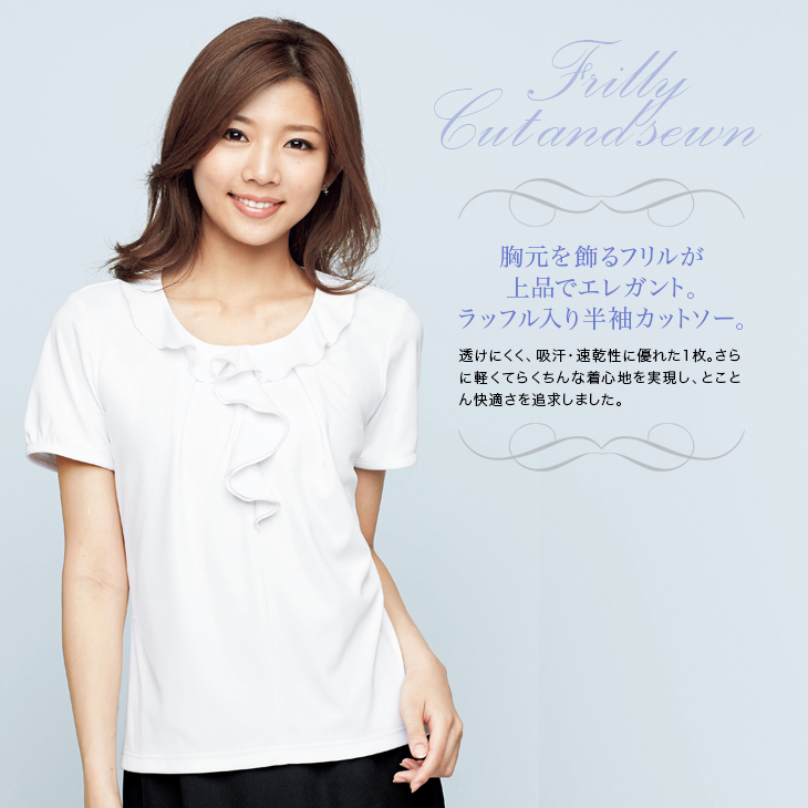 【在庫限り】[通年]フリルがエレガントに波打つ半袖ニット・カットソー(34-KK7809)