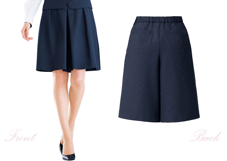 黒とグレーのチェック模様、デザインとてもかわいいと好評です。そしてとても軽くて着やすのと足さばきの良さが気に入っています(^^)。164,5センチの身長があるのですが他の55センチ丈のキュロットよりやや短いように感じます。ネイビー系も購入を考えています。