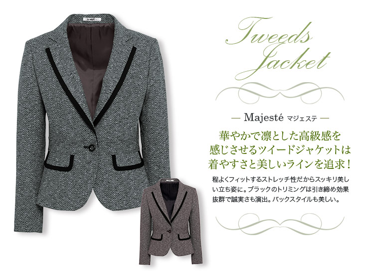 【在庫限り】[通年]<Majeste>ストレッチ性で着心地抜群、高級感漂うツイードジャケット(34-LJ0153)