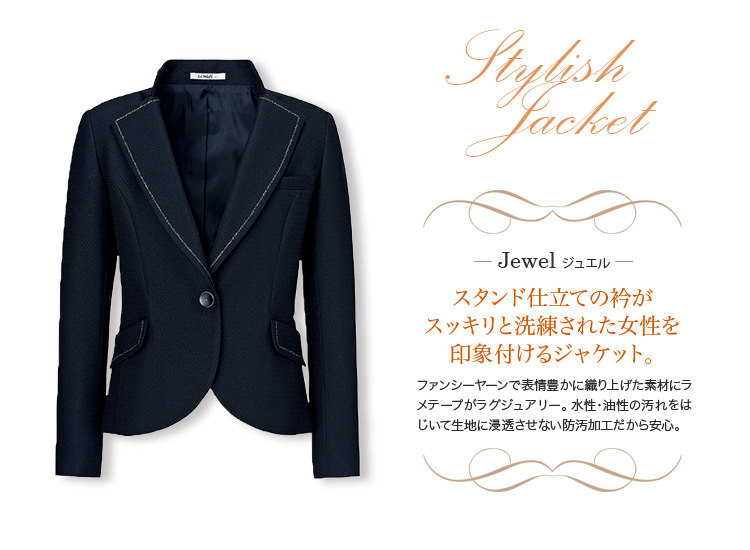 【在庫限り】[通年]<Jewel><防汚加工あり>スタンドカラーが首元をスッキリ見せるジャケット(34-LJ0154)