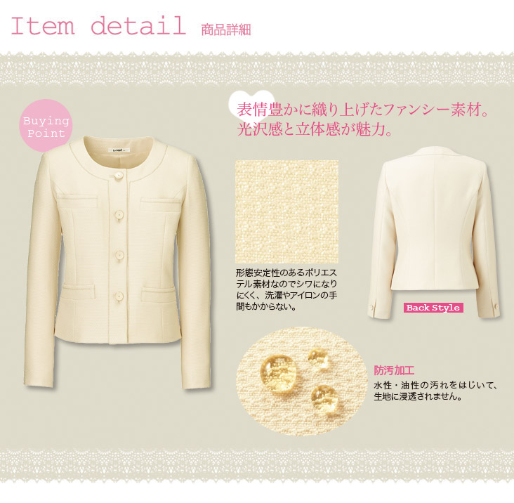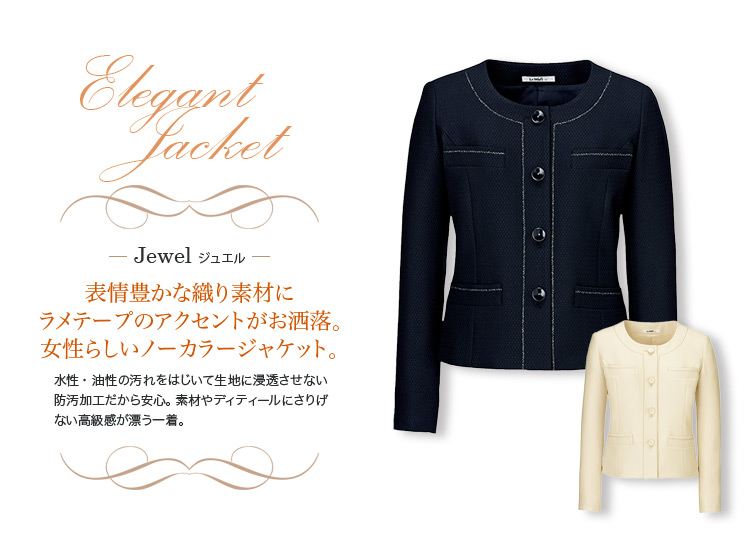 【在庫限り】[通年]<Jewel>防汚加工あり ノーカラーのジャケット(34-LJ0155)