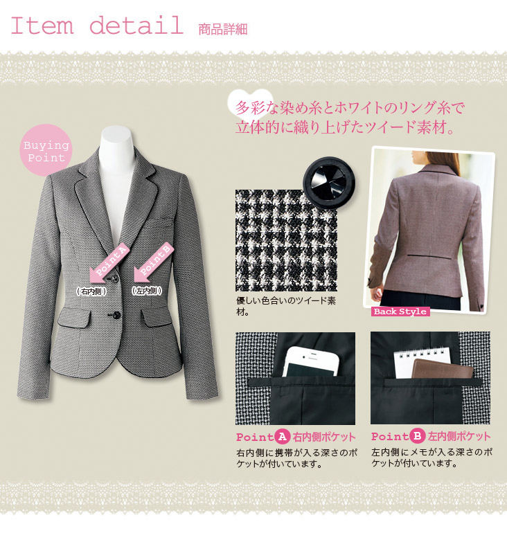 【在庫限り】[通年]<Bondir>やさしい色合いとカッティングのツイードジャケット(34-LJ0160)