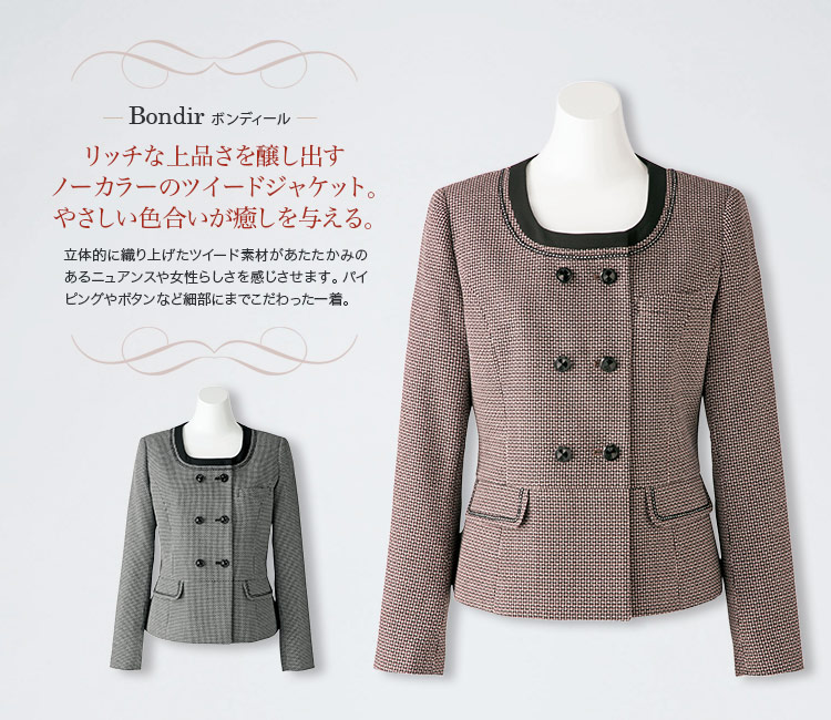 【在庫限り】[通年]<Bondir>リッチな上品さを醸し出すノーカラーのツイードジャケット(34-LJ0161)
