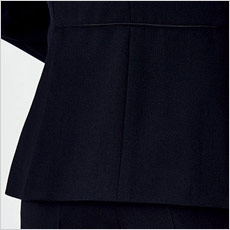 裾に入ったベンツが腰まわりにゆとりを持たせ、ウエストのパイピングが腰位置を高く見せる。