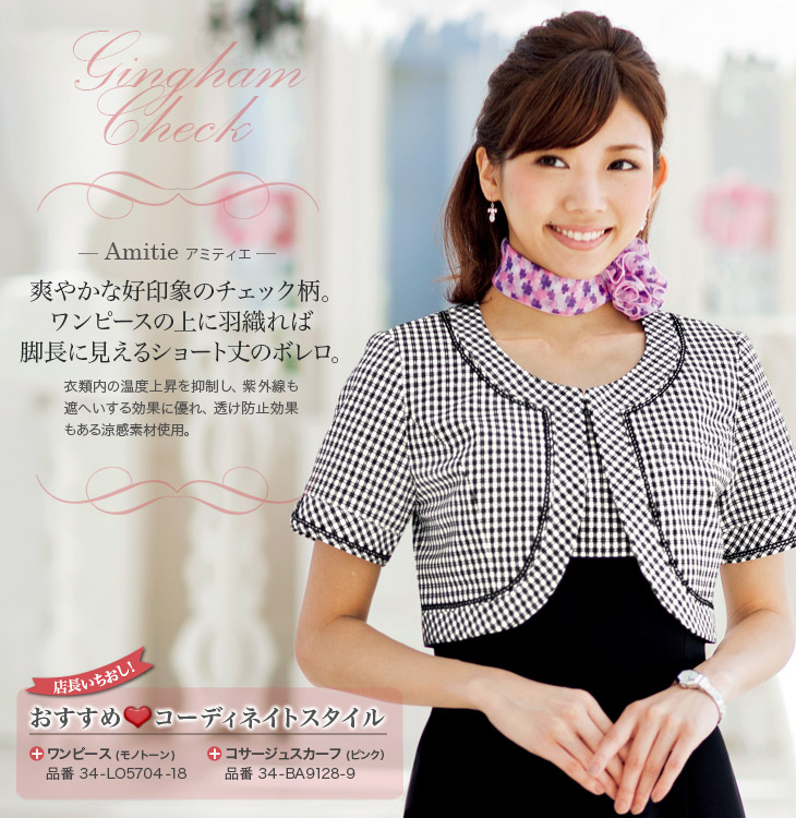 【在庫限り】[春夏用]<Amitie>清涼素材で快適!爽やかなチェック柄のボレロ(34-LJ0744)
