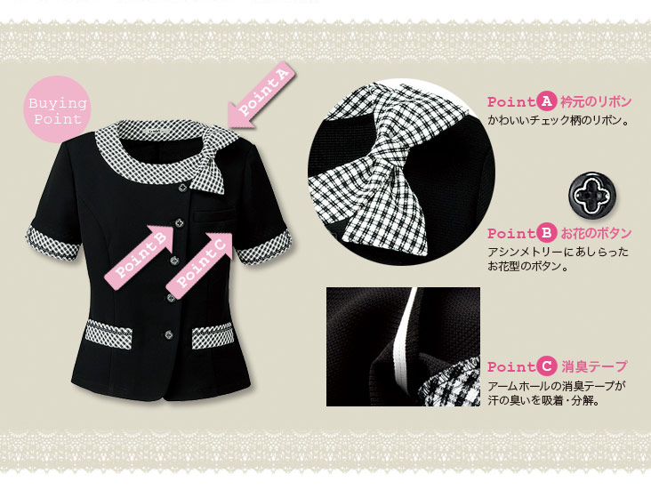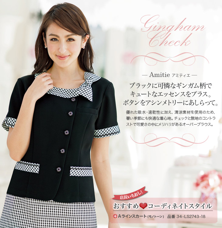 【在庫限り】[春夏用]<Amitie>涼感・チェックリボンのオーバーブラウス(34-LJ0746)