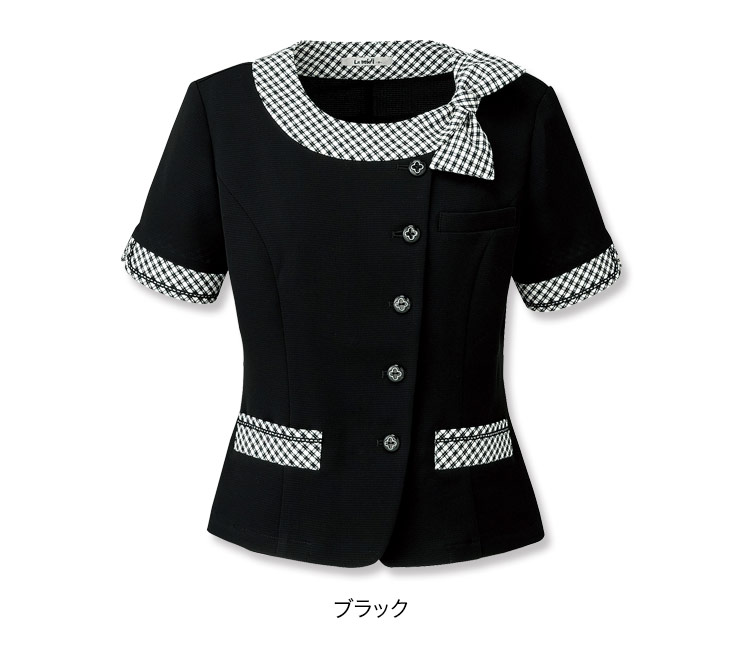 【在庫限り】[春夏用]<Amitie>涼感・チェックリボンのオーバーブラウス(34-LJ0746)
