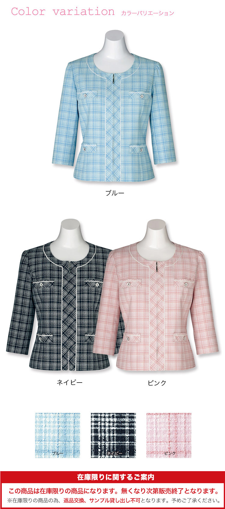 【在庫限り】[春夏用]<Princesse>抗菌・消臭で安心!前ファスナーのチェック柄ジャケット(34-LJ0751)