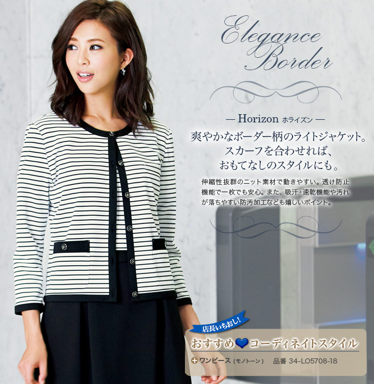 【在庫限り】[春夏用]<Horizon>快適なニット素材。ボーダー柄のサマーライトジャケット(34-LJ0755)